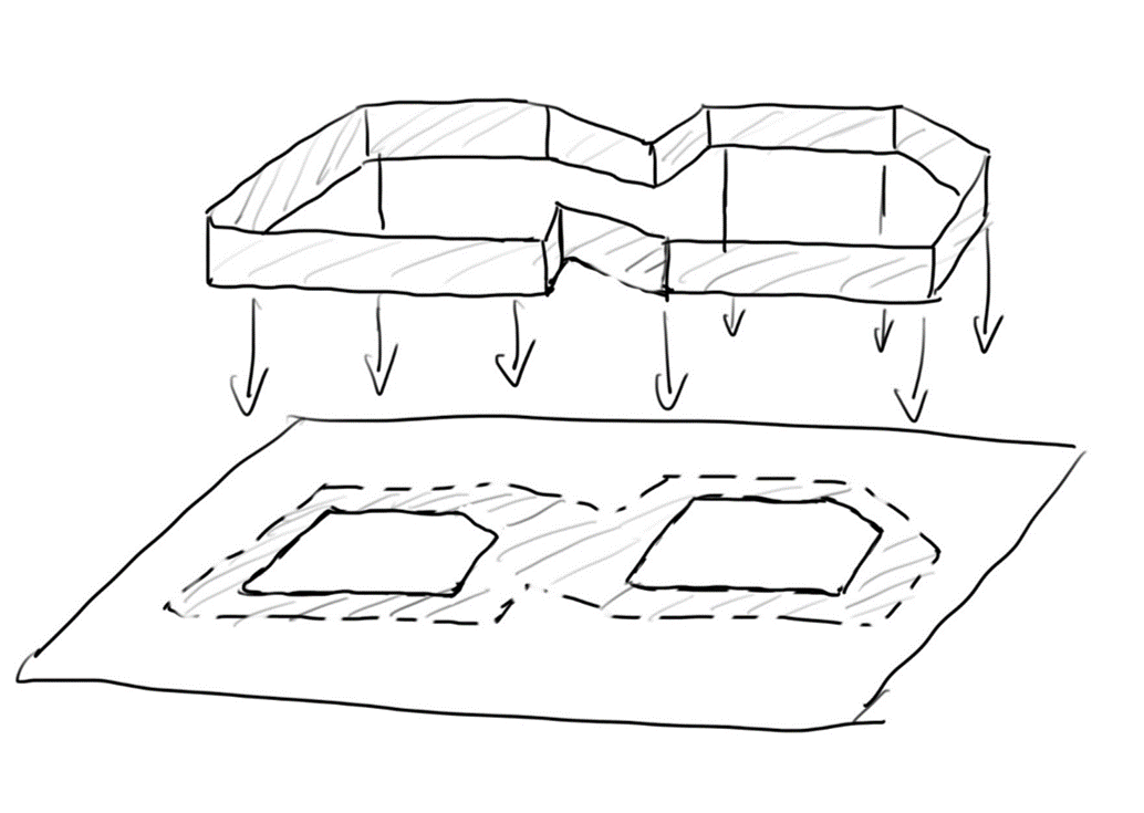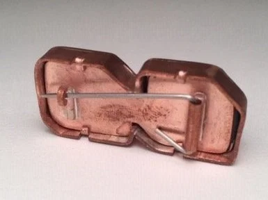 Ideal copper frame sawed and bent, soldered on another copper piece, sawed off dashed line