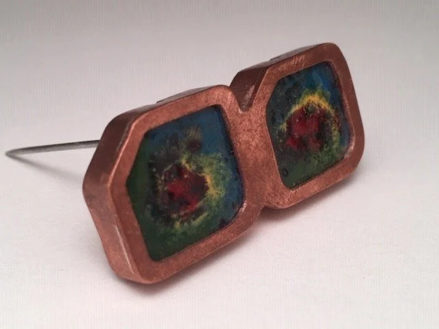 Inspired by my rimless glasses that I accidentally stepped on and broke it. I have nearsighted vision and slight astigmia, so I see things like chaos without lenses, especially at night. The universe also inspired me with circular and twisting enameling designs.